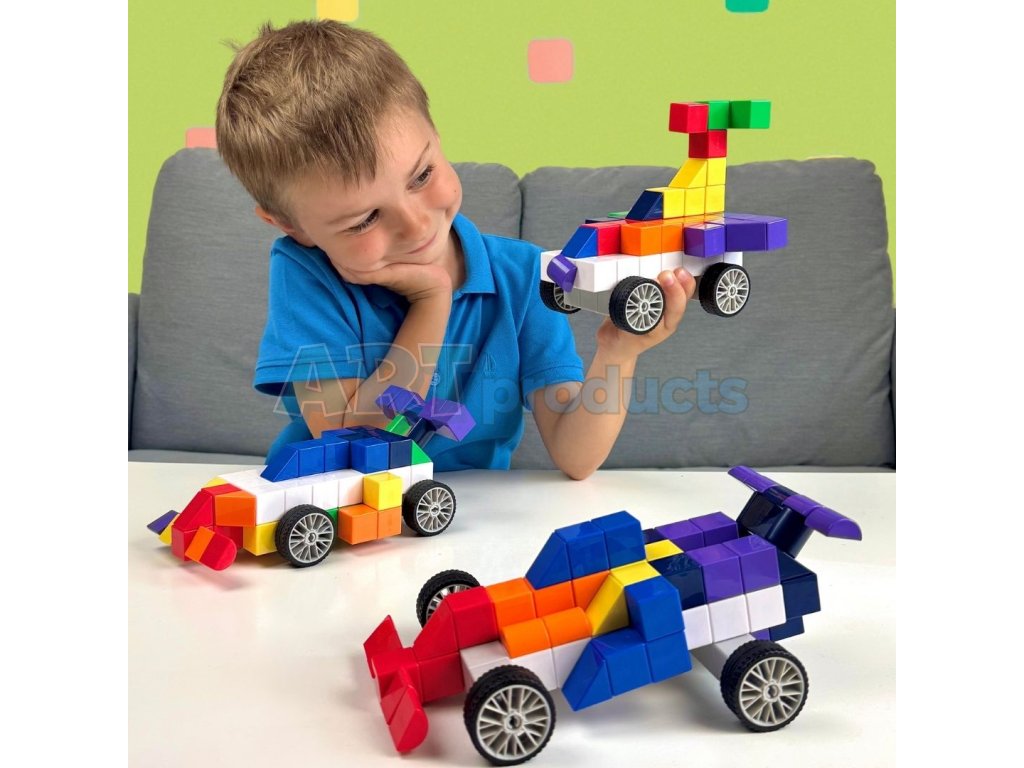 Cublo Speed Racer přináší plnou výbavu pro všechny stavitele: 126 magnetických dílků v pestrých barvách a různých tvarech, ideálních pro stavbu aut, vozíků, ramp nebo futuristických vozidel. Díky magnetům na povrchu dílky snadno a pevně drží pohromadě – ideální pro dynamické projekty i statické modely.