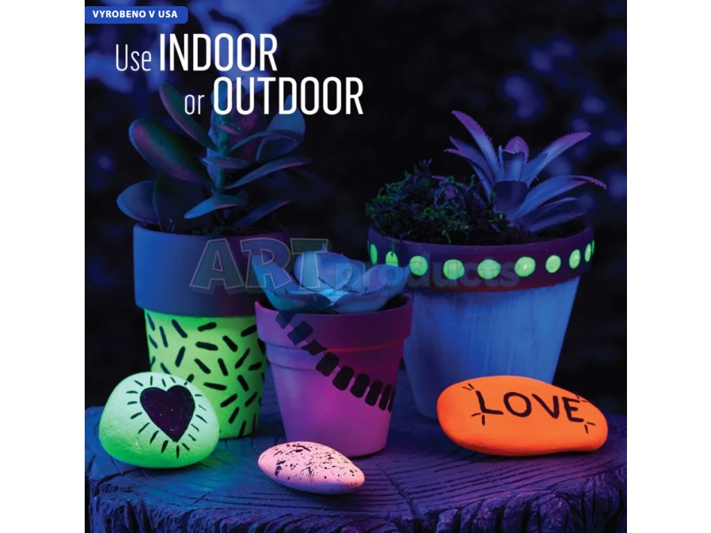 Pro co nejlepší záři doporučujeme nanést dvě a více vrstev nebo použít bílý podklad. Po nasvícení denním nebo UV světlem začne barva zářit ve tmě, čímž vytvoří kouzelný efekt.