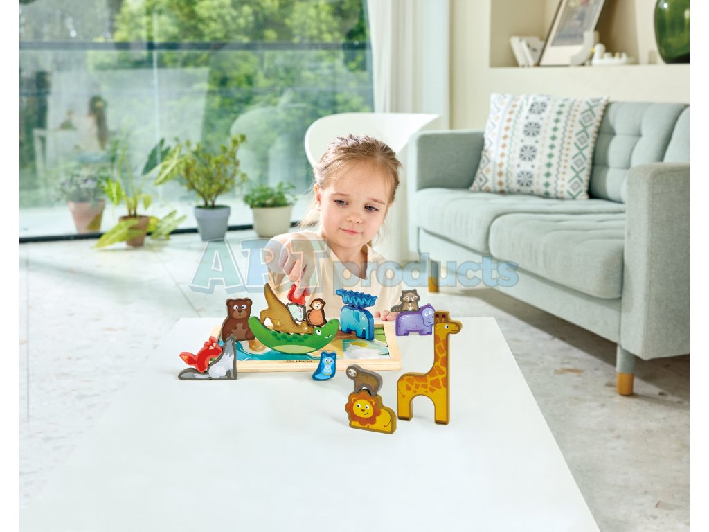 Dřevěné Puzzle s motivem zvířátek od Hape rozvíjí motorické a kognitivní dovednosti. Díky možnosti skládat zvířátka jak na základní desku, tak mimo ni, se rozšiřují možnosti hry a kreativity.