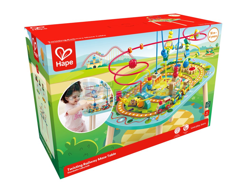 Hape Twisting Railway Maze Table – Interaktivní stoleček pro rozvoj dovedností