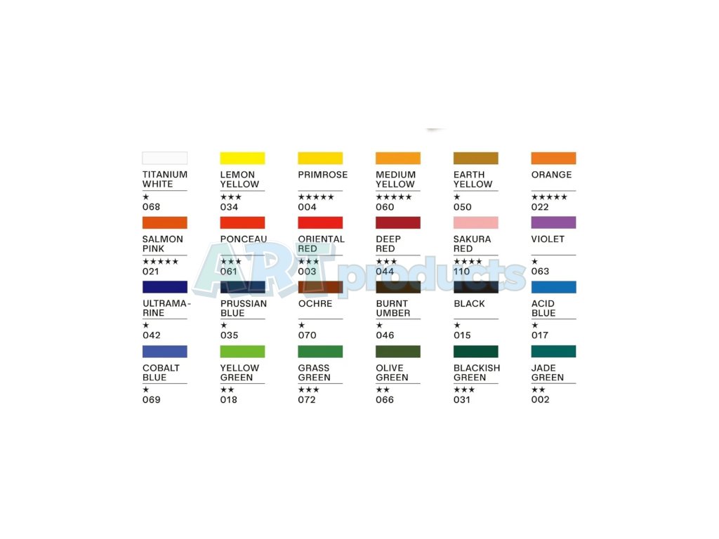 - Efekty: Při ředění vodou lze dosáhnout jemného akvarelového vzhledu