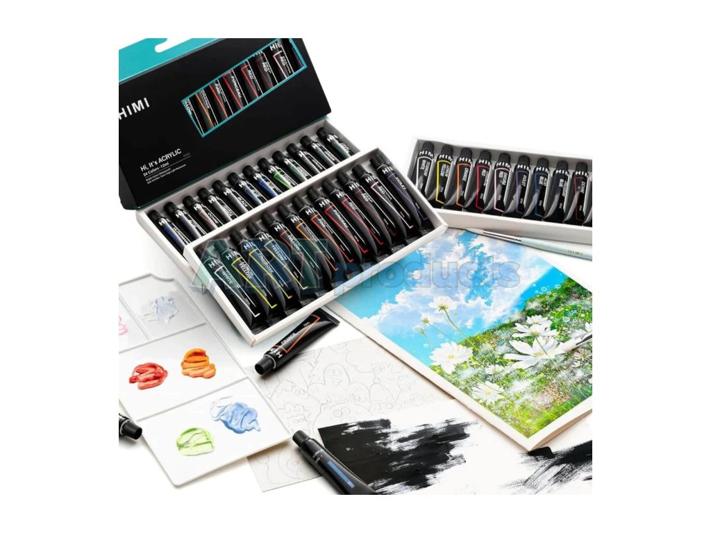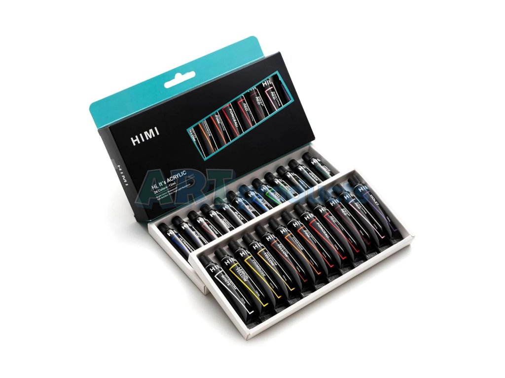 Sada HIMI akrylových barev v balení 24 kusů přináší bohatou paletu barev pro detailní i velkoformátové práce. Díky praktickému balení v tubách po 12 ml jsou barvy snadno dávkovatelné a zajišťují dlouhou životnost. Každý odstín je sytý, krycí a perfektně přilne ke všem běžným výtvarným povrchům.