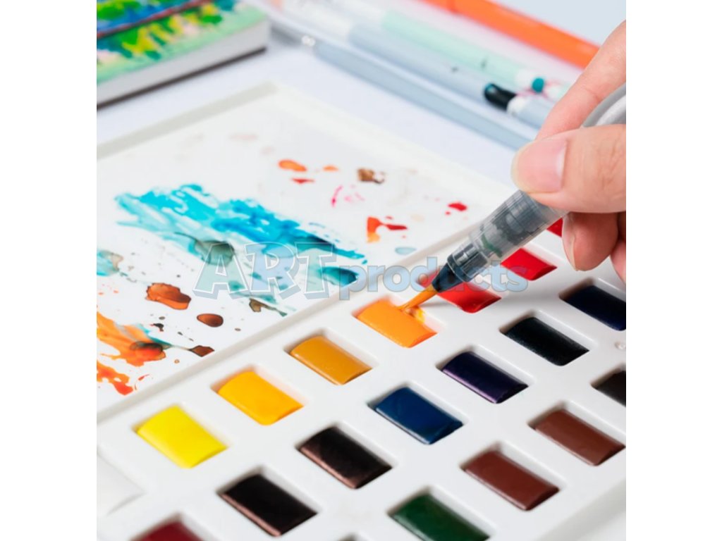 - Obsah balení: 36 barev, vodní štětec, klasický štětec, paletka
