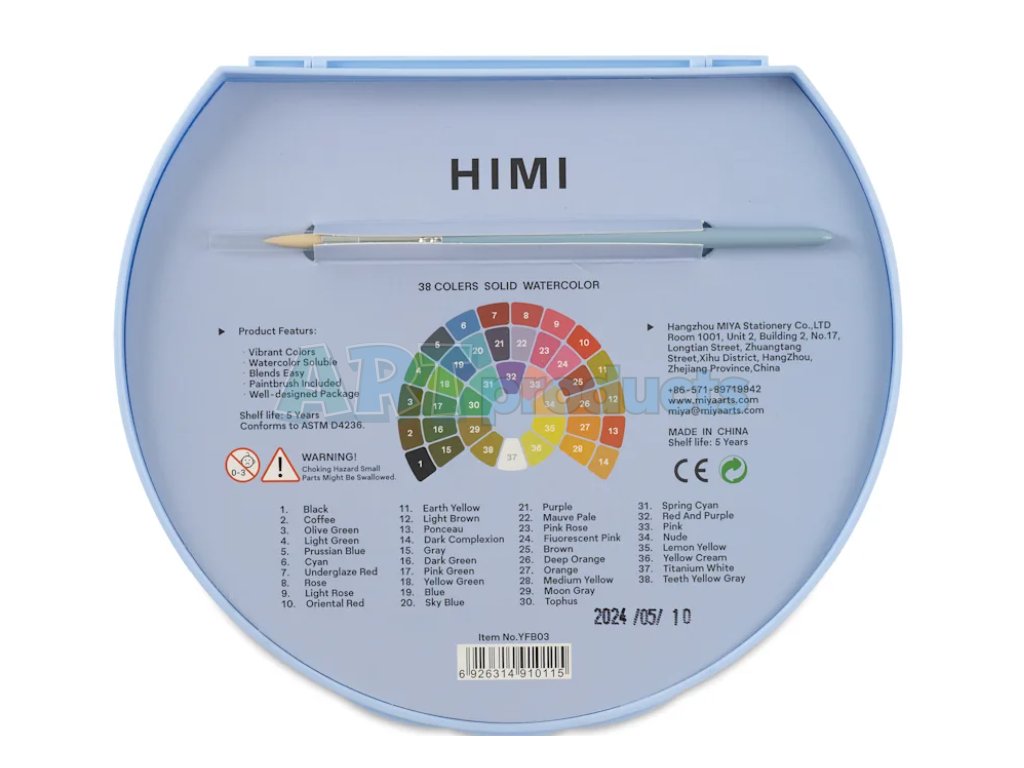 HIMI akvarelové barvy - Solid – 38 Colours in Pans (Blue Edition)