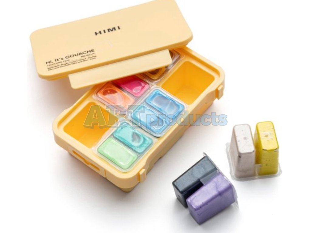 Objevte kouzlo metalických odstínů s touto kompaktní sadou kvašových barev od HIMI. Díky inovativnímu designu twin cup a praktickému žlutému pouzdru je ideální pro umělce všech úrovní, kteří hledají kvalitu a styl v jednom balení.