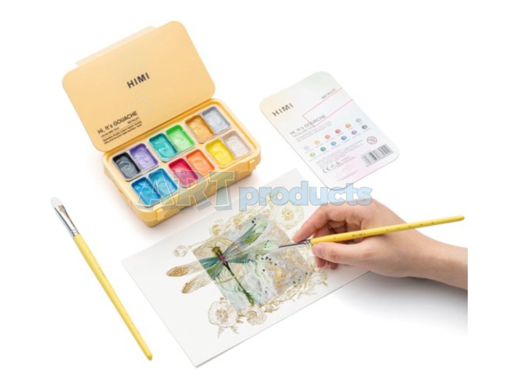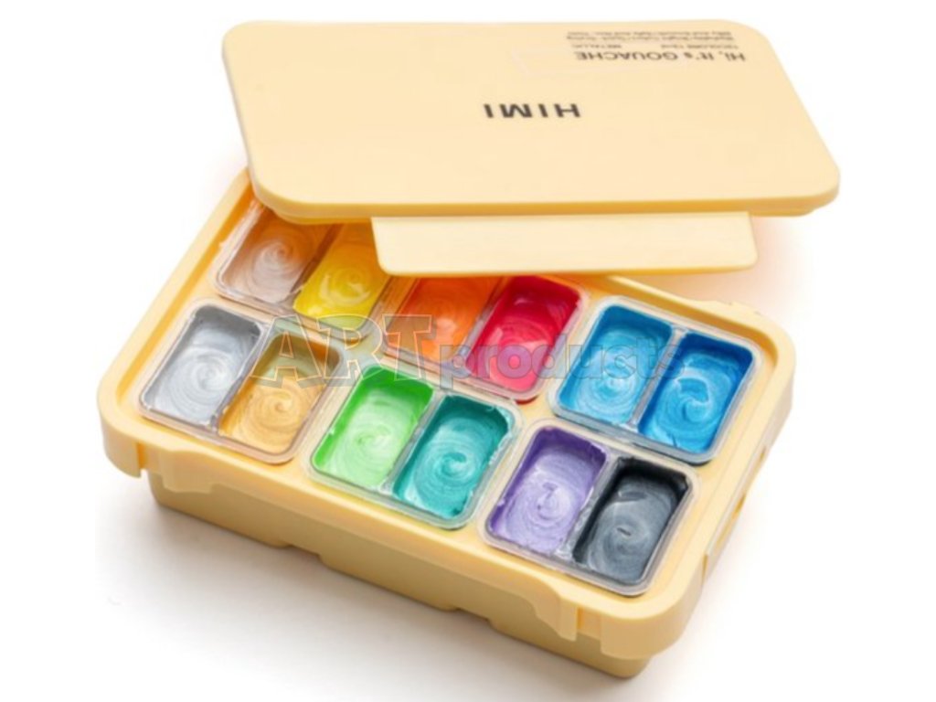 HIMI Twin Cup Metalická gouache sada – 12 barev v žlutém pouzdře