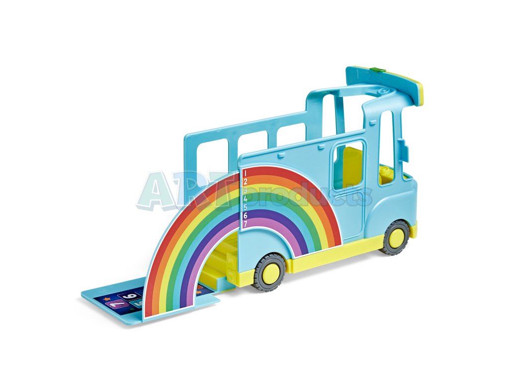 Autobus hraje 12 písniček a zvuků z TV série. Děti mohou pomocí slideru vybrat cílové místo, a díky sklápěcímu zadnímu panelu vidí duhu – zároveň jim autobus vizuálně ukazuje barvy v řadě, a na druhé straně také ilustrace čísel One až Seven. Hra zprostředkovává základy počítání, sledování sekvencí a zábavně motivuje k interaktivnímu učení. Součástí balení je také figurka Seven a arch samolepek pro dekoraci.