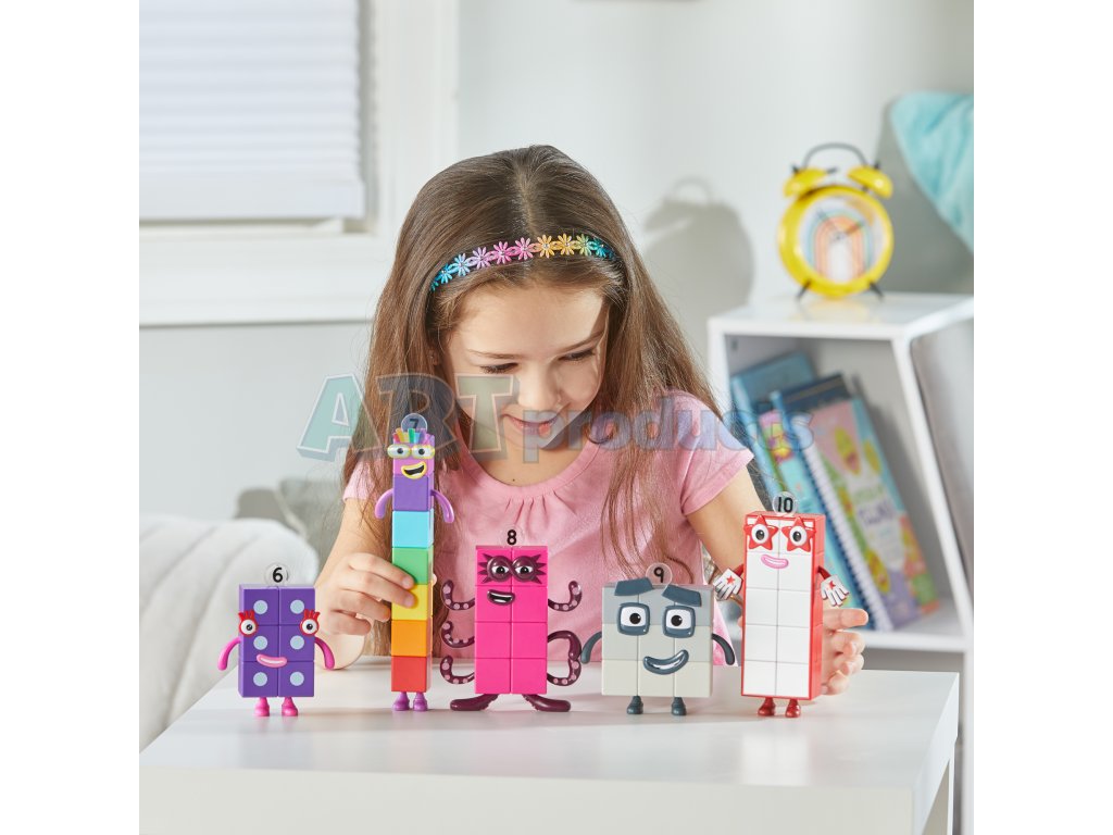 Sada Numberblocks® Přátelé od šesti do deseti rozšiřuje svět Číselné země o další nové kamarády. Tyto barevné, zábavné a přátelské figurky navazují na sérii One to Five a přinášejí ještě více možností, jak si děti mohou osvojit matematické základy hravou formou.