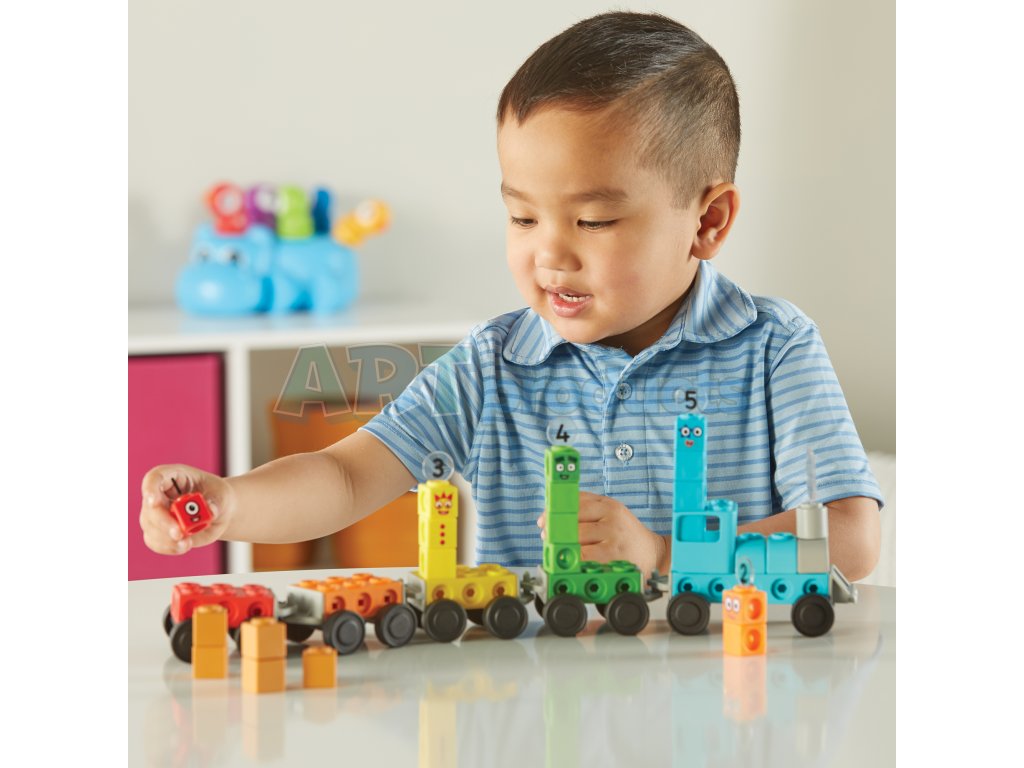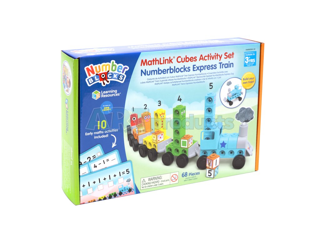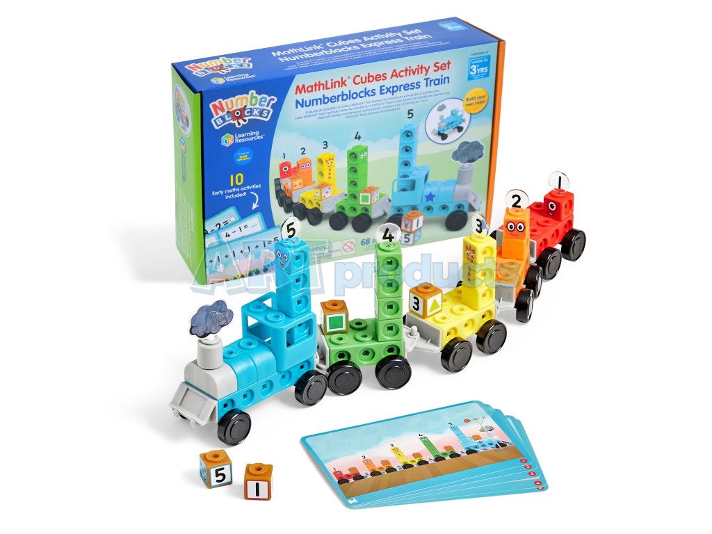 Learning Resources – Express Train Activity Set je interaktivní vzdělávací sada, která kombinuje oblíbené postavy z Numberblocks s kreativní konstrukcí a základními matematickými aktivitami. Děti si staví postavičky čísel 1 až 5 pomocí 21 spojovacích kostek, doplní je o Numberlings figurky, a pomocí kolejových dílků sestaví vlastní vlak. K tomu využívají nákladní díly a aktivity, které vedou děti hravou formou k počítání, sčítání, odčítání a porozumění číslu.