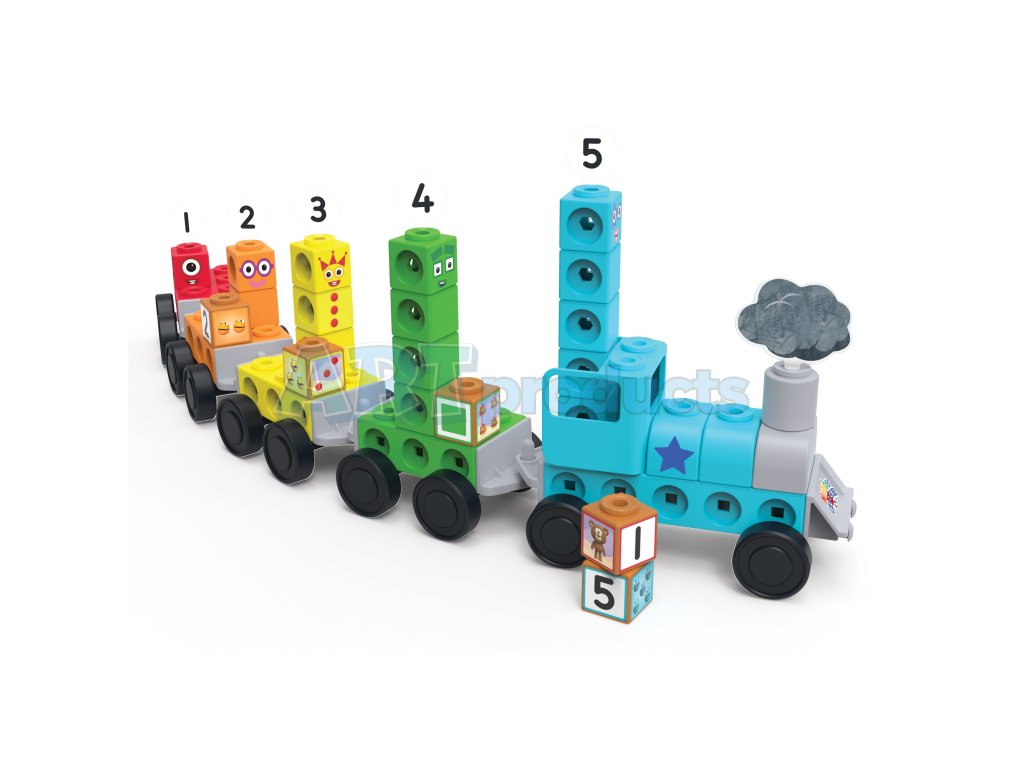 Sada aktivit MathLink® Numberblocks Express Train umožňuje dětem stavební hru s vlakem, rozvoj počítání a jednoduché aritmetiky pomocí spojovacích kostek a tematických doplňků.