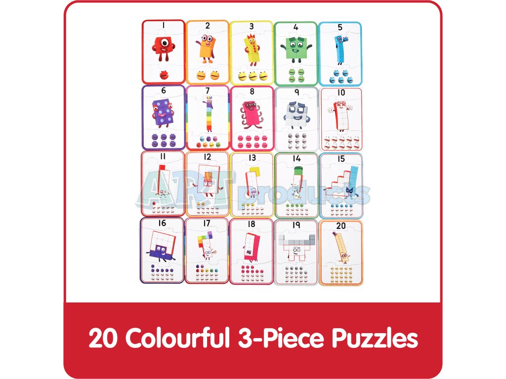 - Obsah balení: Puzzle dílky s čísly 1–20 a postavičkami Numberblocks®