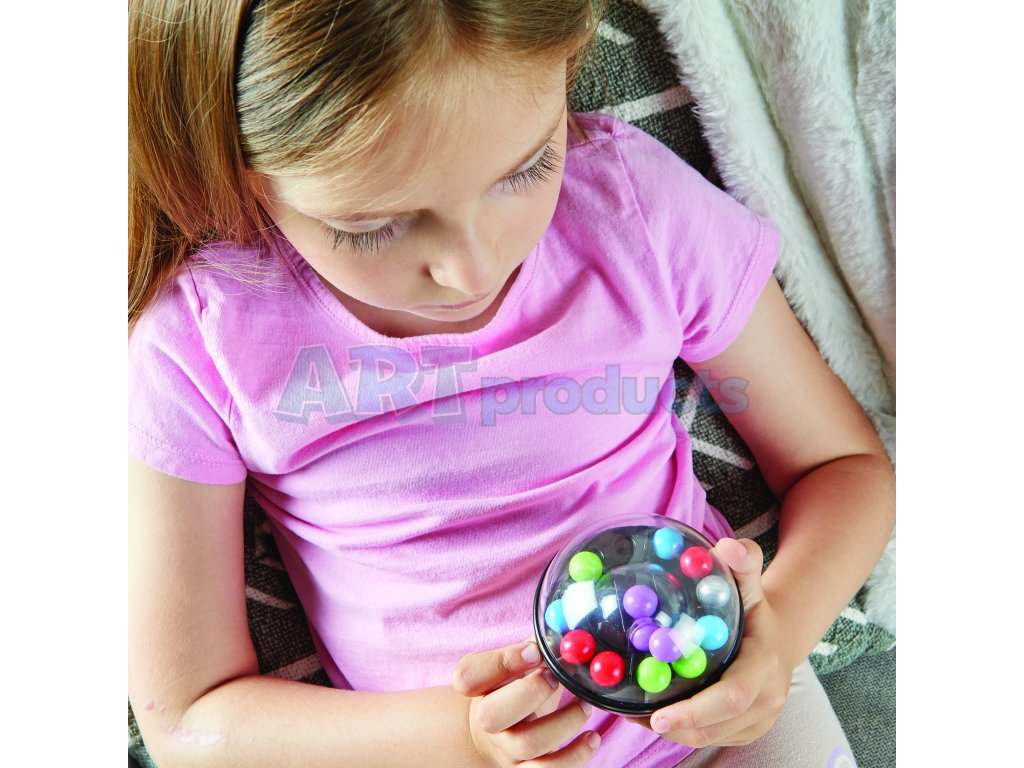 - Puzzle míč naplněný 13 barevnými plastovými kuličkami
