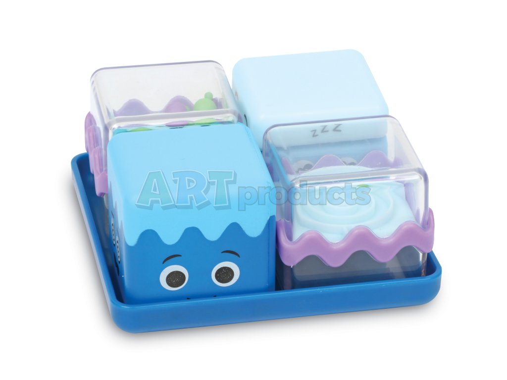 Díky různým senzorickým podnětům děti objevují, jak reagovat na stresové situace, a učí se samostatně regulovat své chování. Kostky jsou vyrobené z kvalitního průhledného plastu, mají příjemnou velikost pro dětské ruce a jsou plně bezpečné.