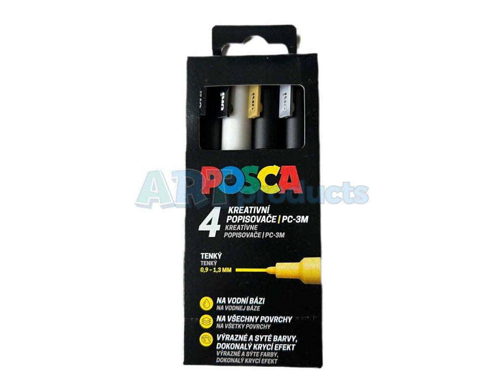 POSCA akrylový popisovač PC-3M 4 ks - bílá, zlatá, černá, stříbrná