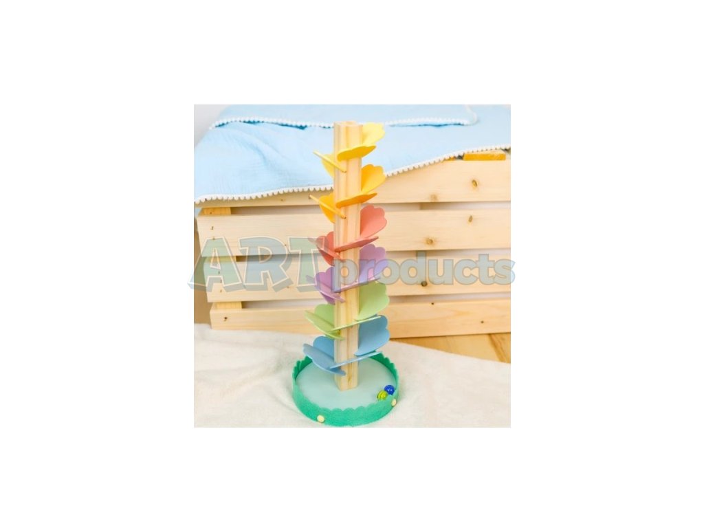 Tato barevná kuličková dráha je navržena tak, aby poskytla nejen zábavu, ale i smyslovou stimulaci. Když dítě pustí kuličku shora, sleduje její svižný pohyb dolů a přitom naslouchá jemnému klapotu, který každá dráha vydává. Tím se přirozeně rozvíjí jeho sluchová a zraková koordinace i jemná motorika.