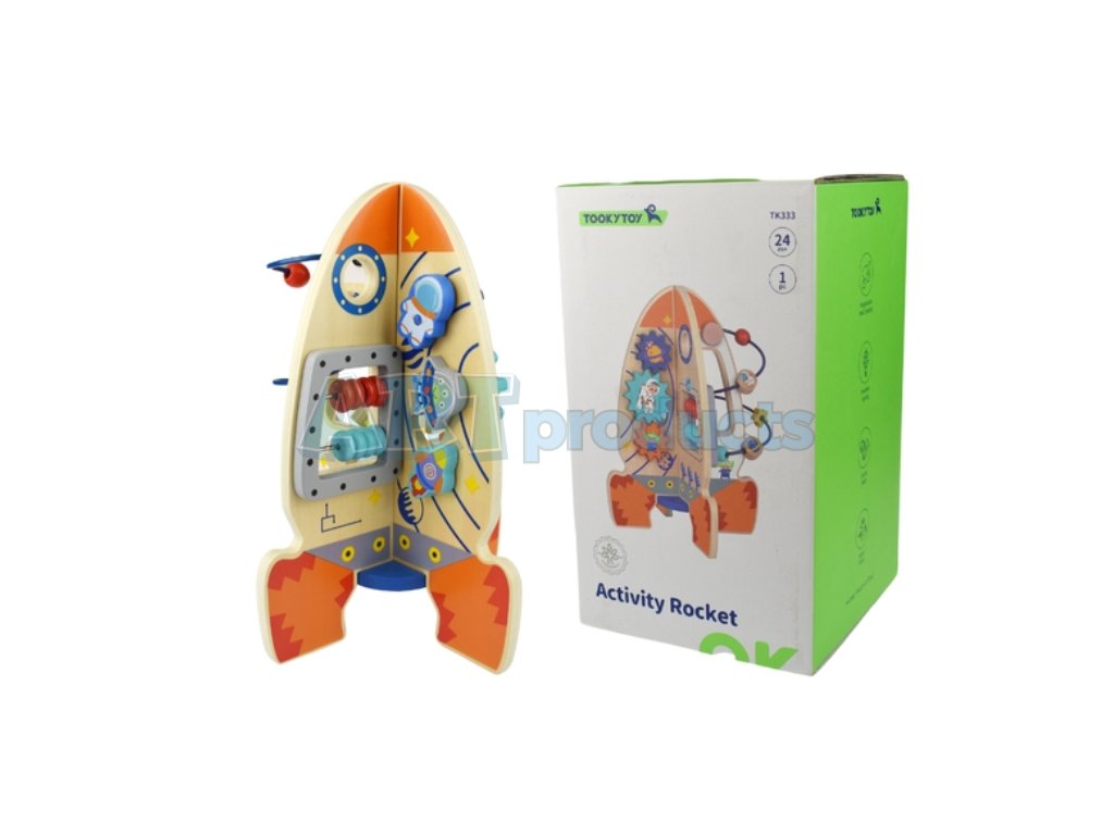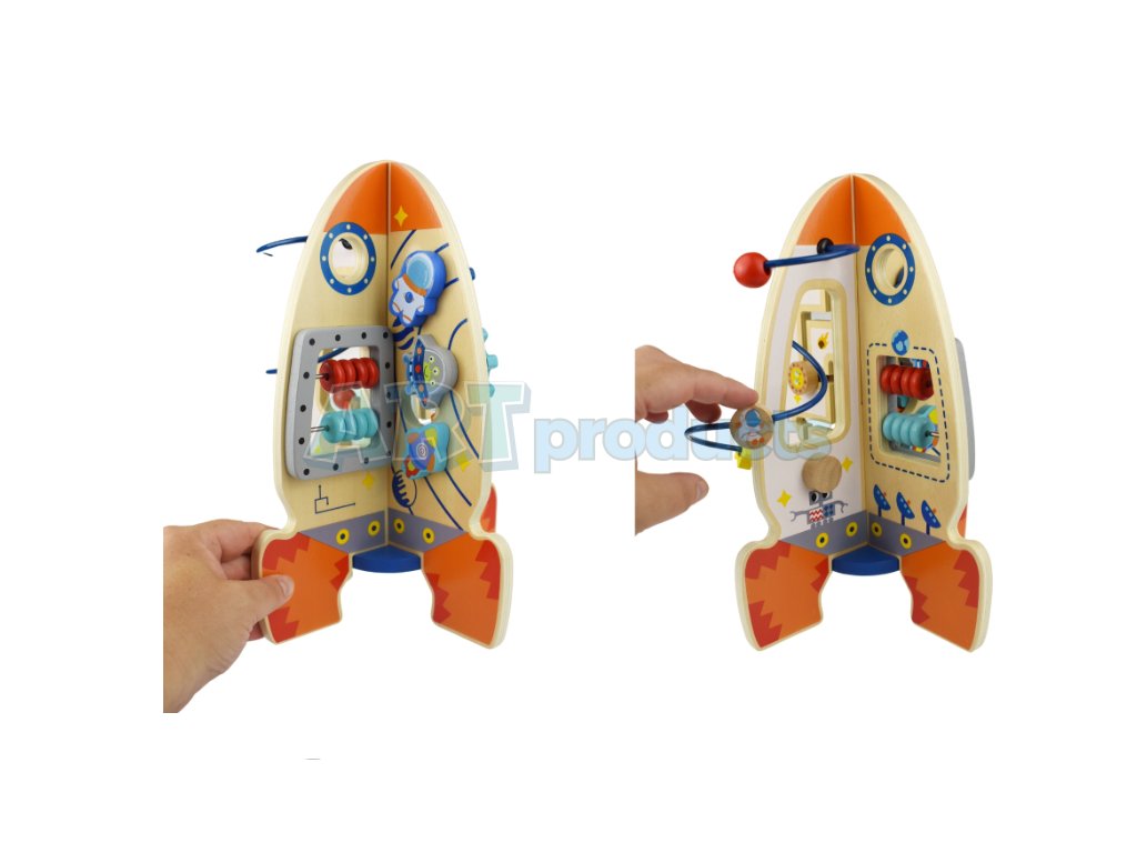 - Dřevěná raketa s interaktivními aktivitami po stranách