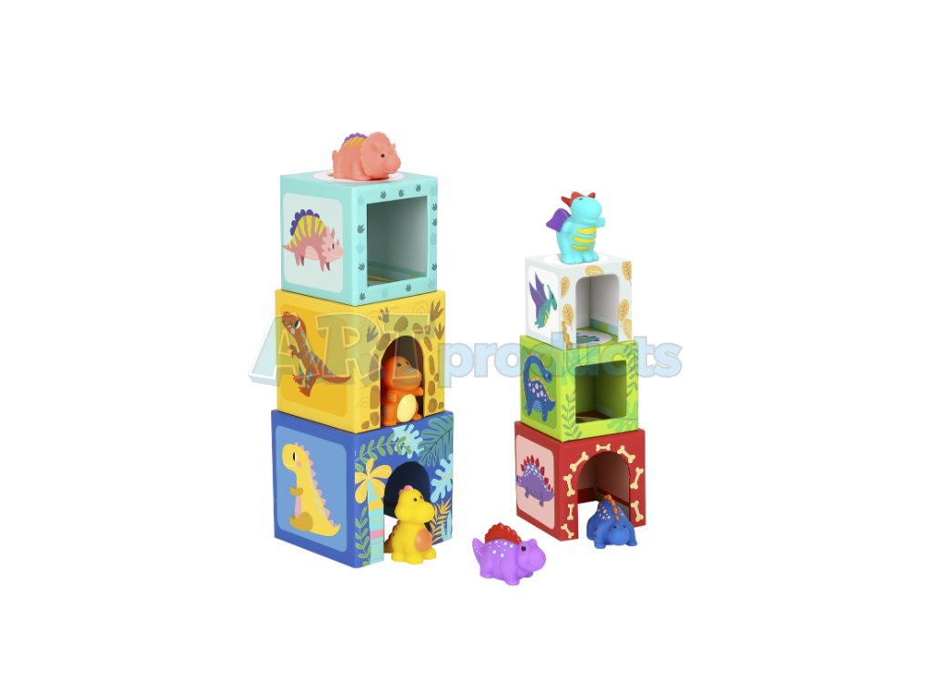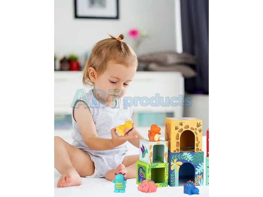 Tooky Toy – Skládací kostky Dinosaurus jsou ideální volbou pro první stavební hračky malých dětí. Šest krabic různých velikostí s krásnými ilustracemi dinosaurů láká děti ke stavění věží, skládání kostek do sebe i hledání, kam který dinosaurus patří. Každý dinosaurus má své vlastní místo, které musí dítě objevit – což pomáhá rozvíjet logické myšlení a vnímání detailů.