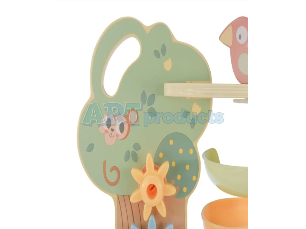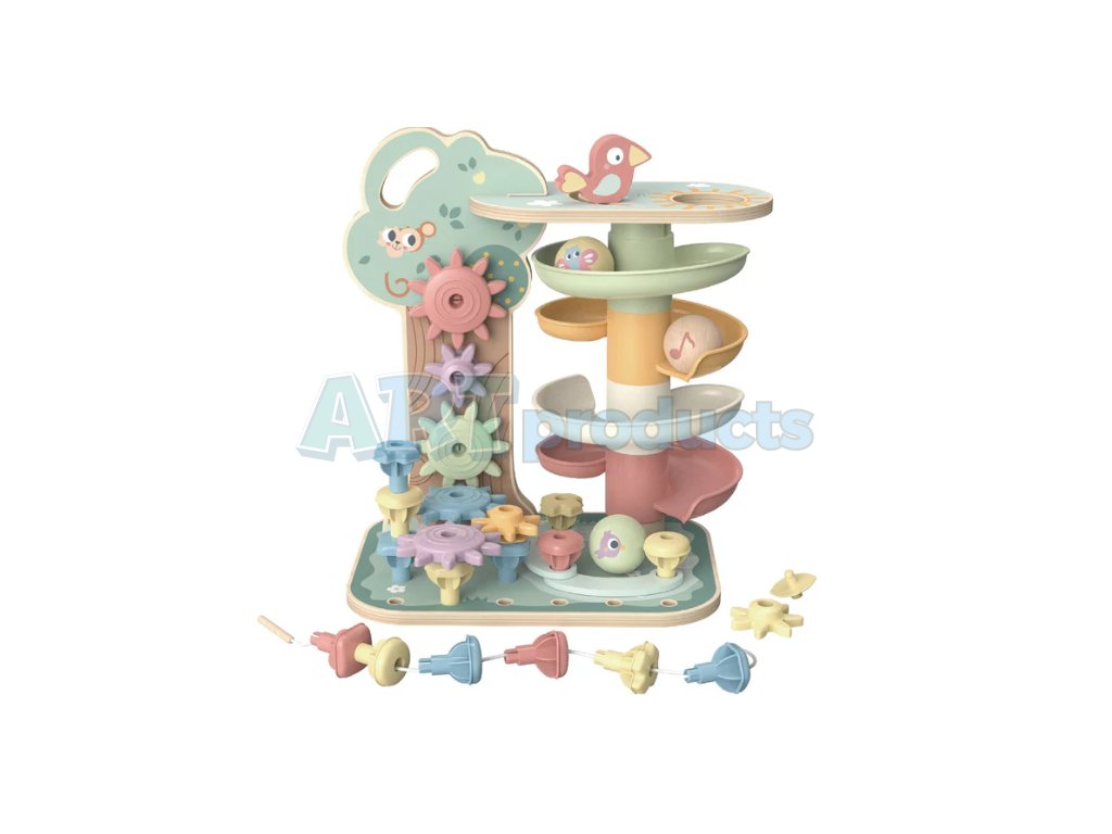 Zábavný interaktivní strom podporující jemnou motoriku, smyslové vnímání a koordinaci oko-ruka. Sada obsahuje míčkovou věž, ozubená kola, navlékací nitě a spoustu herních možností v jemných pastelových barvách. Vyrobeno z certifikovaného dřeva a odolného plastu.