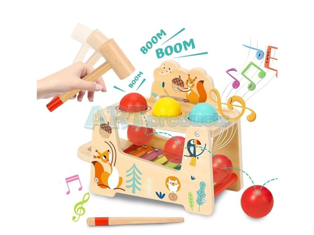 Tato chytrá hračka pomáhá dětem rozvíjet motoriku, koordinaci a přirozený smysl pro rytmus. Zatloukačka je zábavná i poučná – a díky veselým zvířátkům i vizuálně přitažlivá.