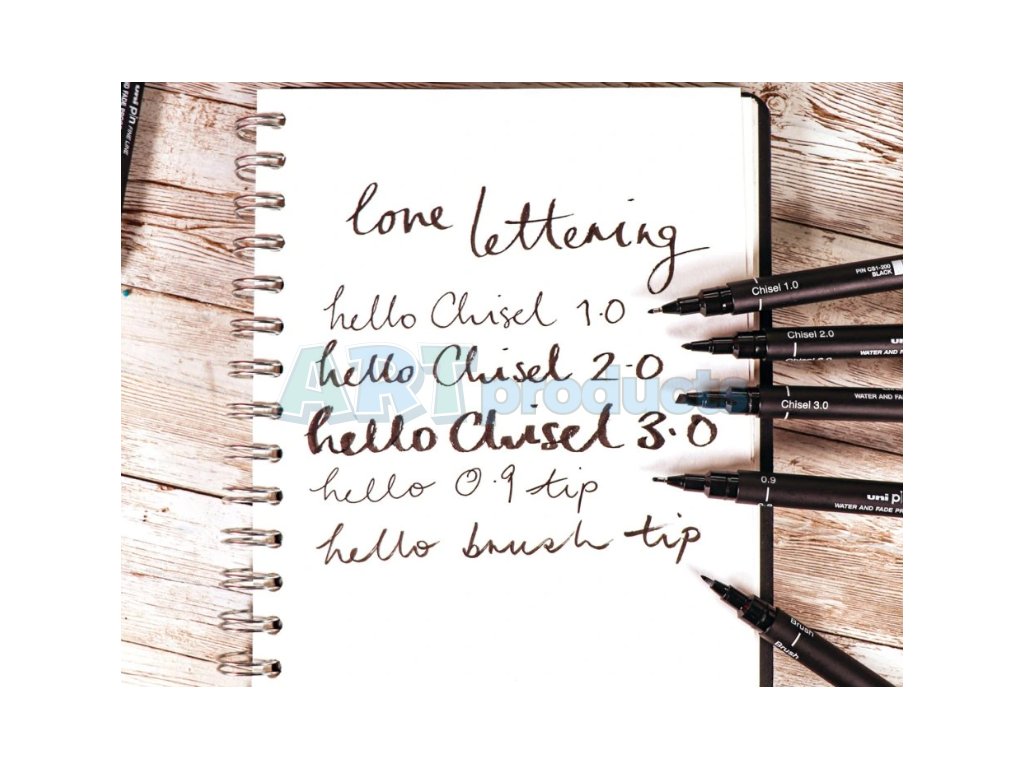 Uni pin Love Lettering sada 5ks linerů v černé barvě je navržena pro všechny milovníky písma a uměleckého kreslení. Sada obsahuje linery s různou šířkou hrotu (0,05 mm, 0,1 mm, 0,3 mm, 0,5 mm a 0,8 mm), což poskytuje širokou škálu možností pro vytváření jemných detailů i výrazných tahů. Voděodolný a rychleschnoucí inkoust zaručuje, že vaše práce zůstane nepoškozená i při kontaktu s vodou a rychle uschne, což je ideální pro vrstvení a rychlou práci.